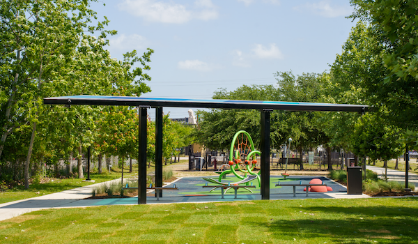 This Jerdon project in East Downtown Houston enhances the Bastrop Promenade from Polk Street to Bell Street with new playground equipment, upgraded lighting, added seating, and refreshed landscaping. Additional improvements include updated drainage, improved sidewalks, and new signage and striping.
